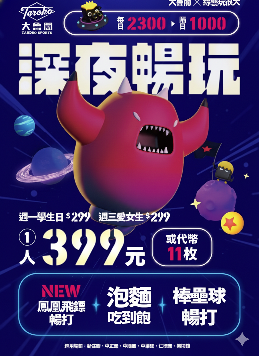 首頁 服務據點 新莊館 新莊館 基本資訊 消費方式 ➤ 官網購票享超值代幣套餐【加贈寶礦力1瓶】⚾️ 全新深夜方案-399棒球、飛鏢、多樣設施玩到底,再享泡麵吃到飽!! 【新莊館機台收費標準】 棒壘球道 代幣:1枚 - 娃娃機 現金:10元,台數:4 - 撞球 無 - 新型投球機 代幣:2枚 - 颶風籃球機 代幣:1枚 - 飛鏢機 代幣:1枚 - 舊型投球機 無 * 超級籃球機 代幣:1枚 - VRBOX 現金:30 元 或 60元 - 迷你保齡球 代幣:1枚 - 桌球 無 - 射擊道 代幣:1枚