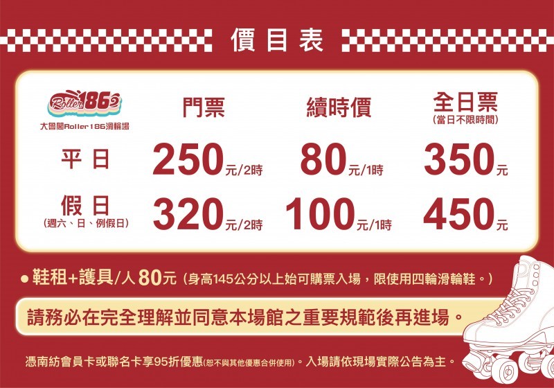 3. 如有未盡事宜,依照大魯閣 Roller186滑輪場說明為主,本公司保有活動調整、修改、解釋說明之權利