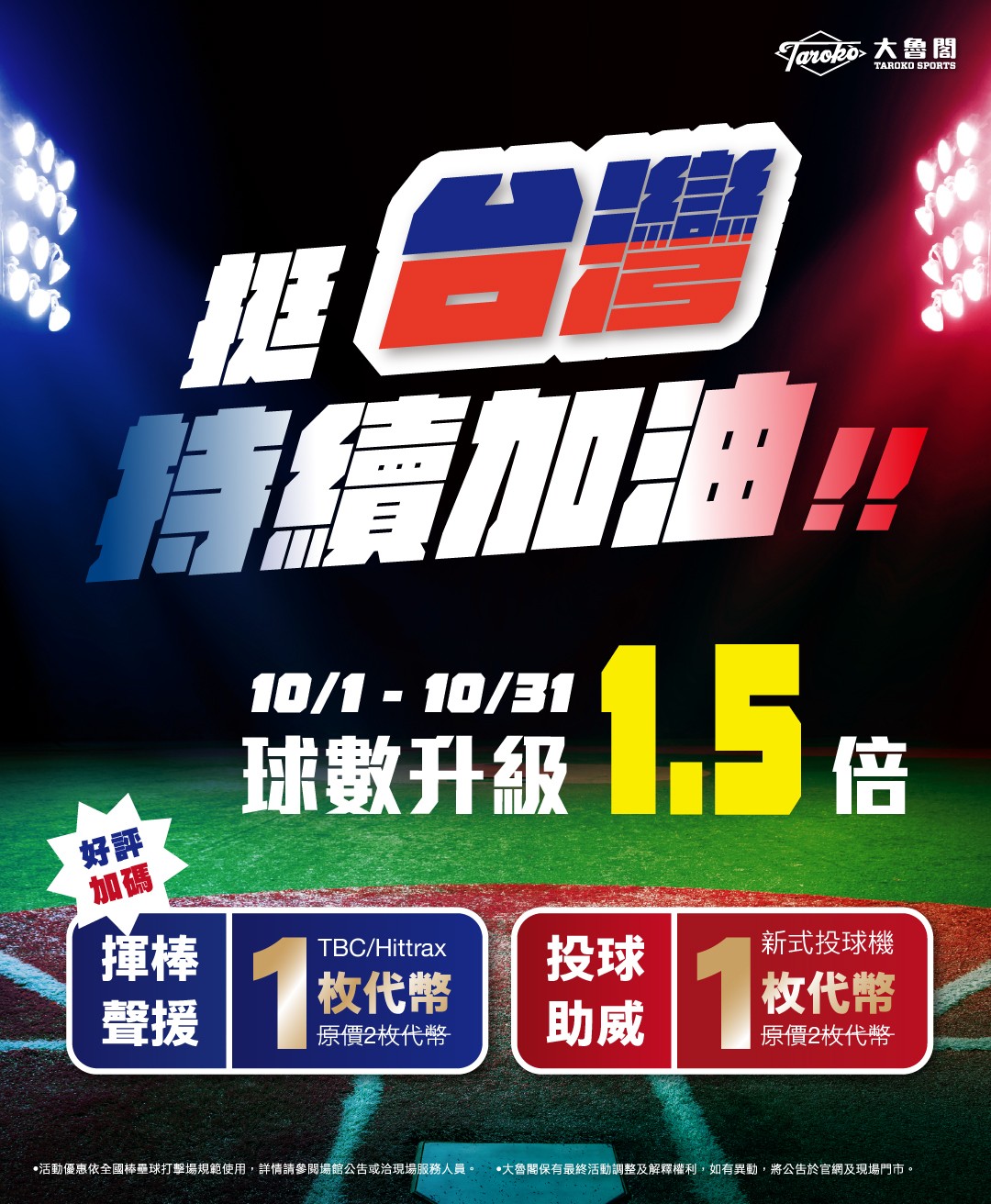 【棒壘球打擊場】台灣加油,球數天天加碼1.5倍