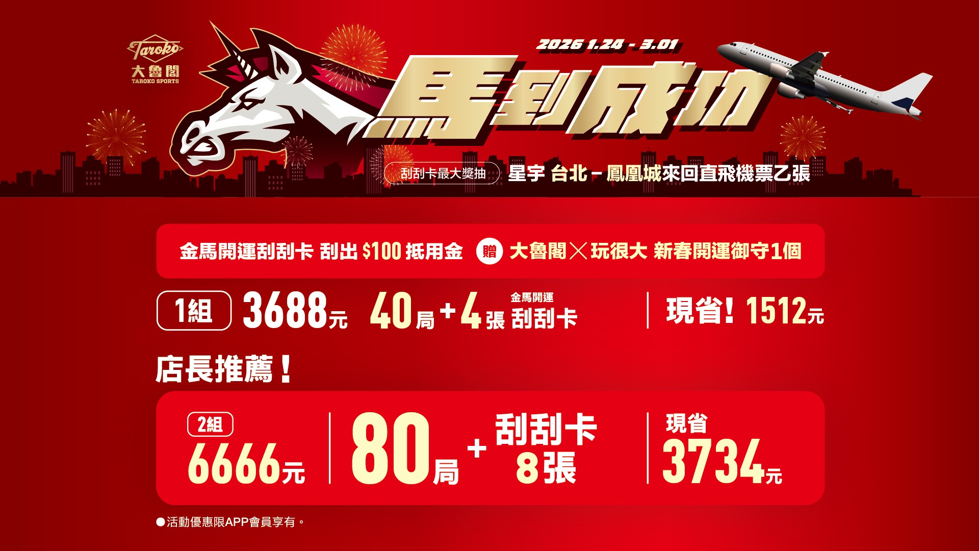 1.活動優惠僅限大魯閣APP會員,購買新春指定套餐享有。