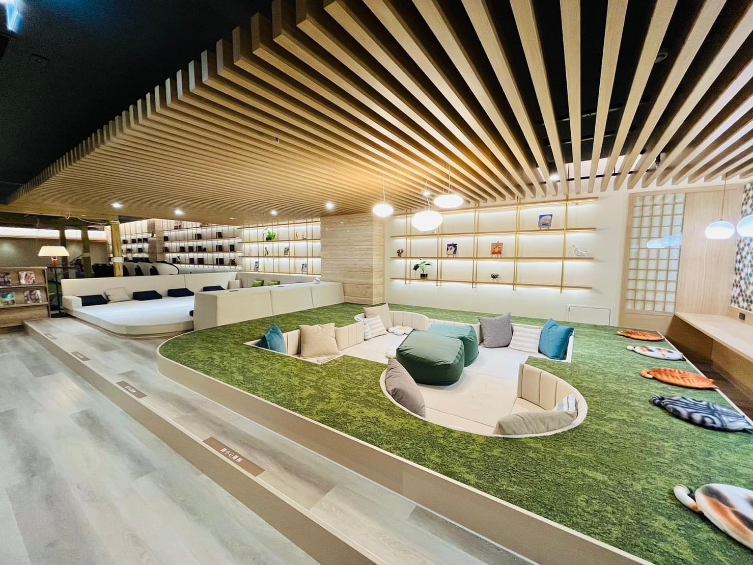 這裡也提供了超過100席的休憩空間,提供雙人吊床、躺椅沙發、個人臥鋪、懶骨頭及沙發坐躺區等,以及想要享受私人空間的悅書閣,你可以恣意選擇想要小憩的角落,享受專屬自己的療癒時光。館內也貼心提供近5,000本的雜誌、漫畫與暢銷書籍,讓大家可以暫時放下手機,享受文字與自我紓壓的時光。